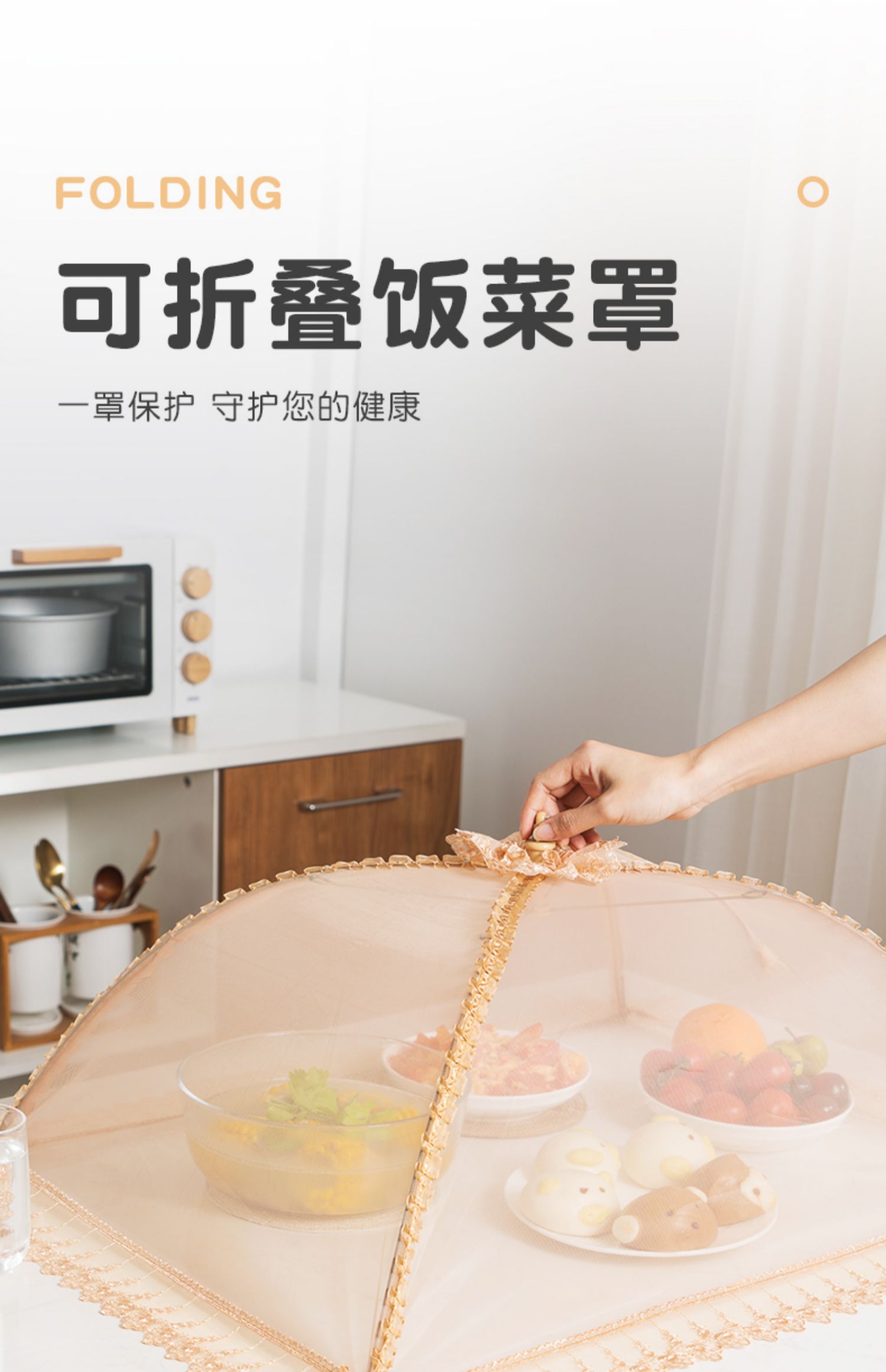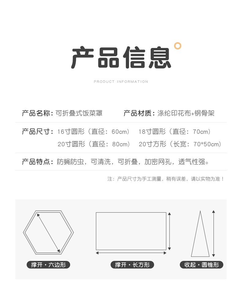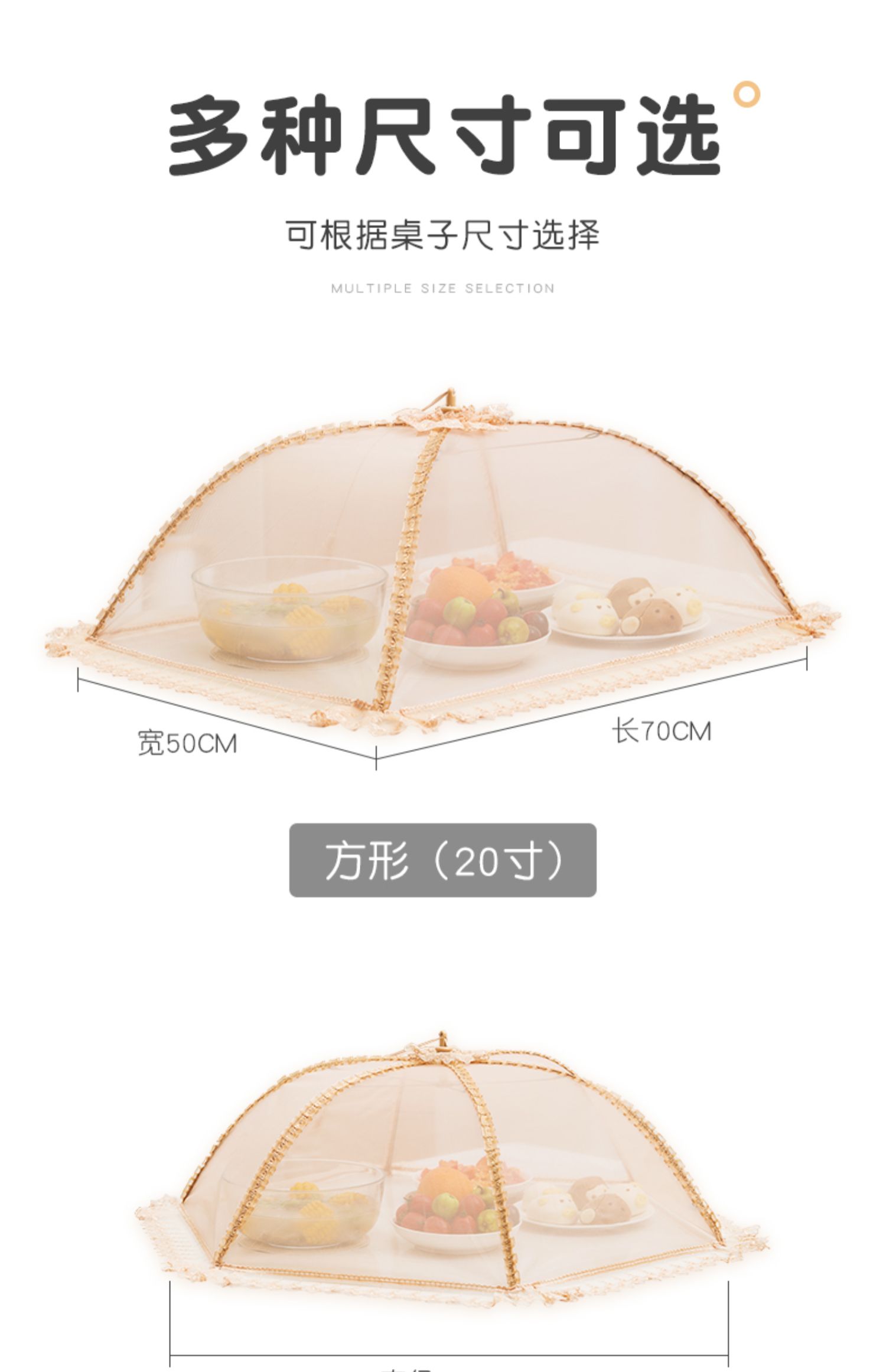 欧式风情,可水洗可折叠菜罩~360°防蚊防虫,加密网纱,伸缩支架,牢固耐用~简约花边,大容量,美观又实用~伸缩拉扣,收纳方便不占地方,你的健康,由它守护!【赠运费险】
