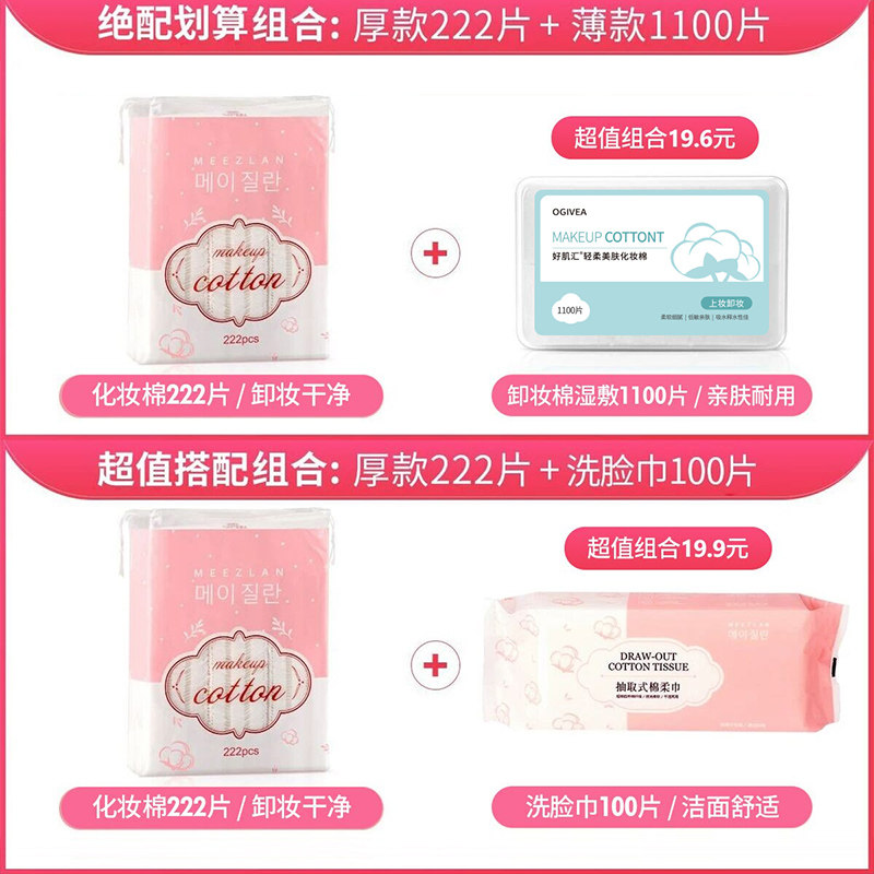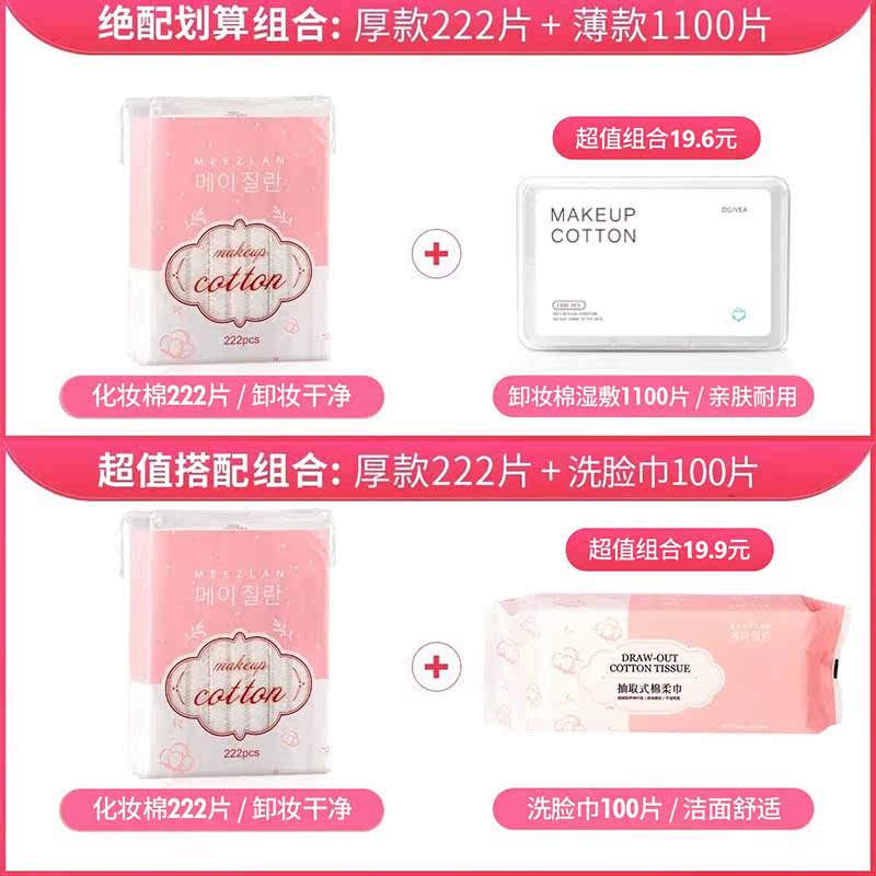 3层加厚款!韩国222片双面化妆棉