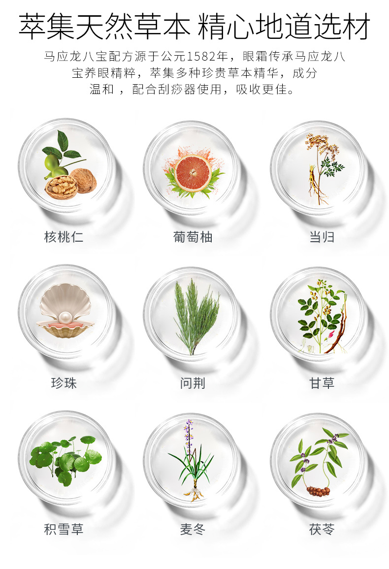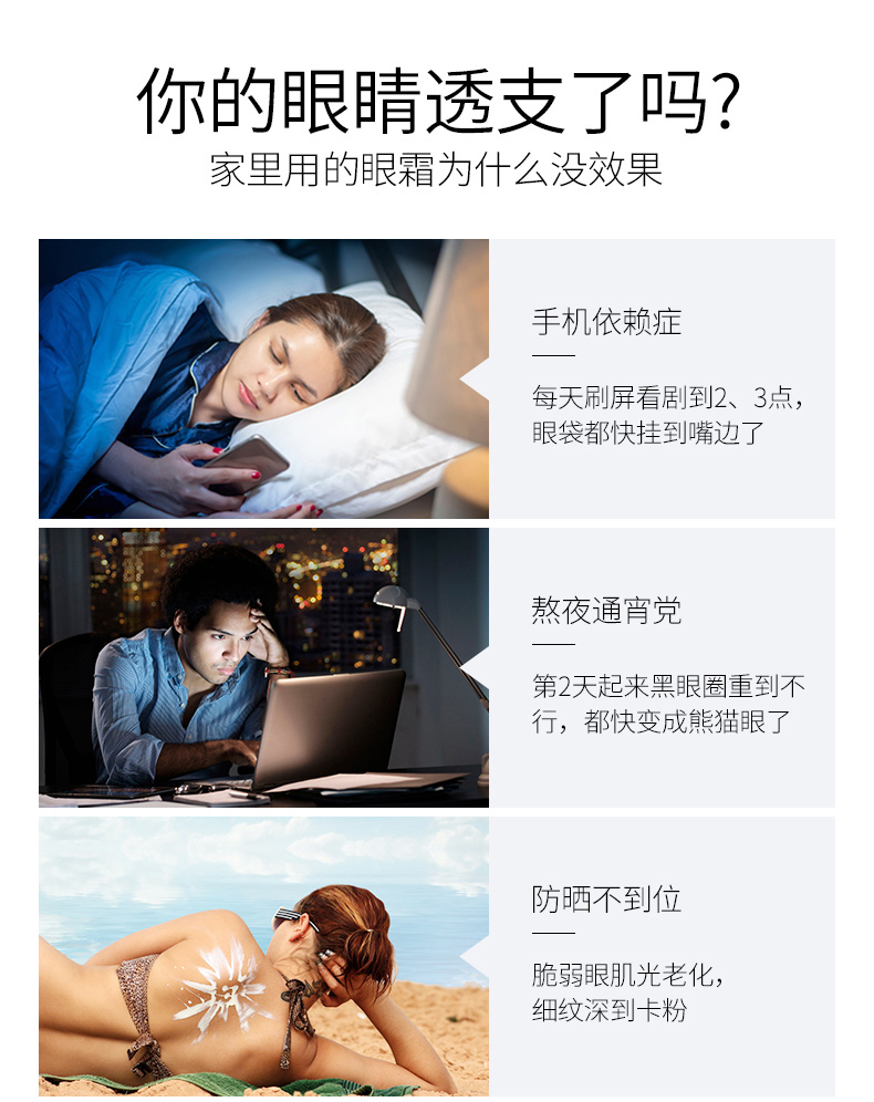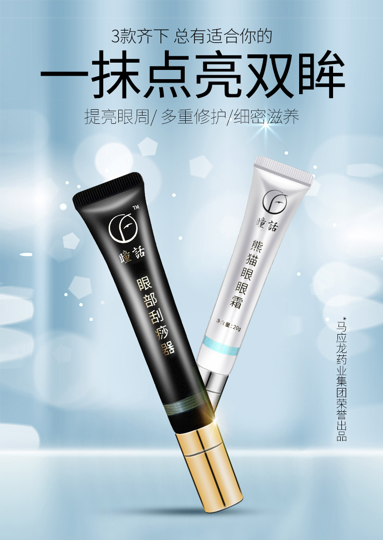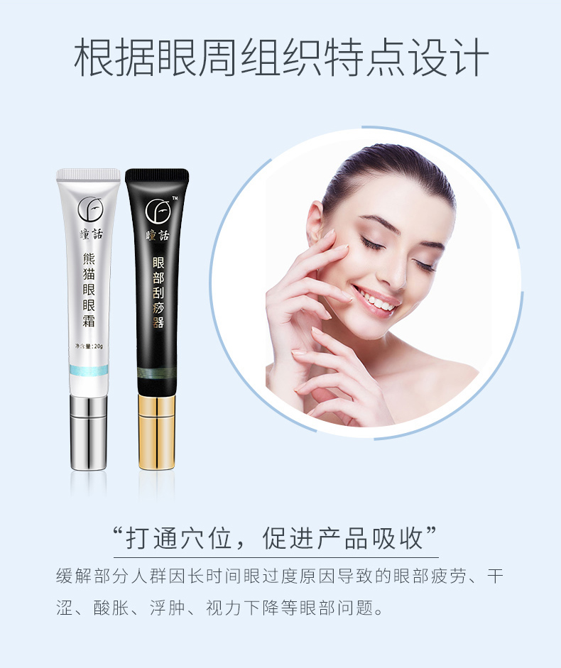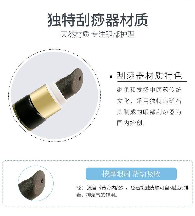 提亮眼周,多重修护,细密滋养,一抹点亮双眸,独特刮痧器材质,专注眼部护理。