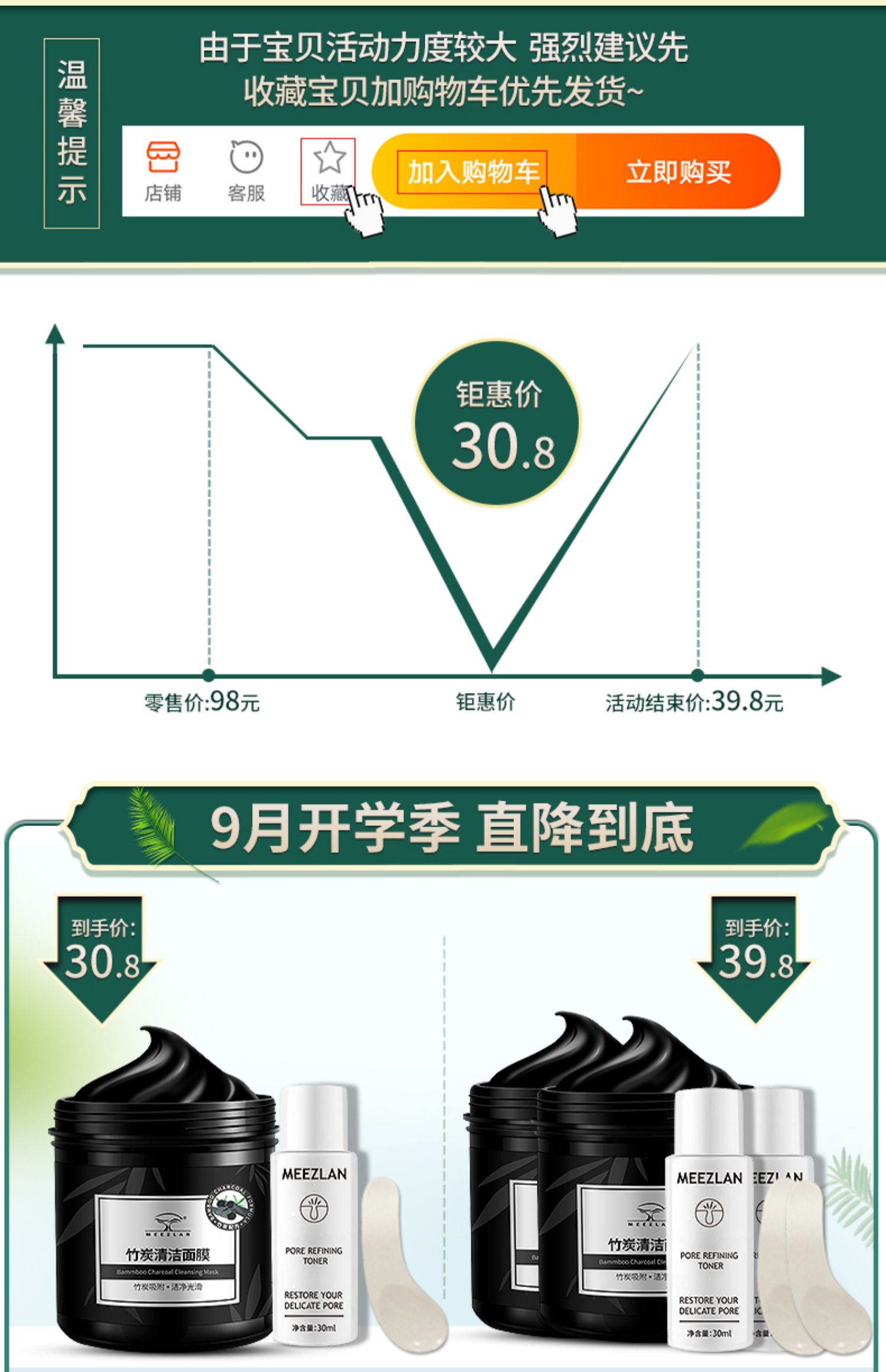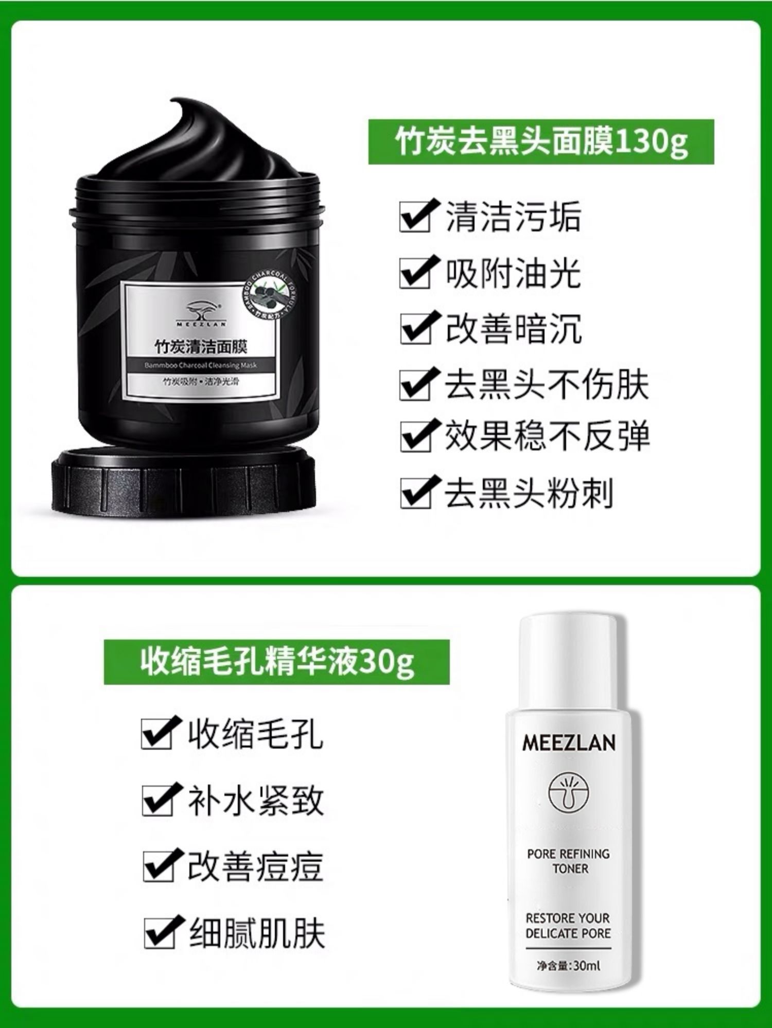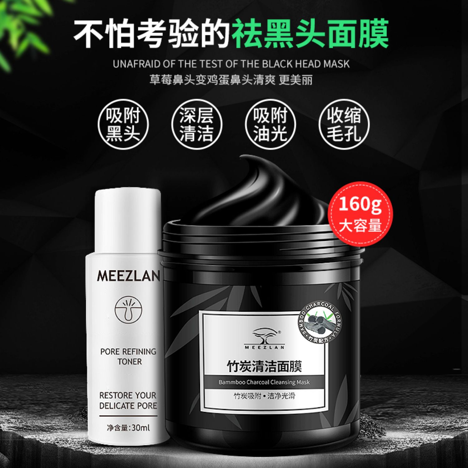 送收缩水1瓶~全脸【祛黑头神器套装160g】天然竹炭去黑头面膜,去黑头白头,不伤皮肤,强力吸黑头,深层清洁毛孔,祛吸黑头神器!男女通用款,强力吸附,告别黑头粉刺,颜值蹭蹭升级~【赠运费险】