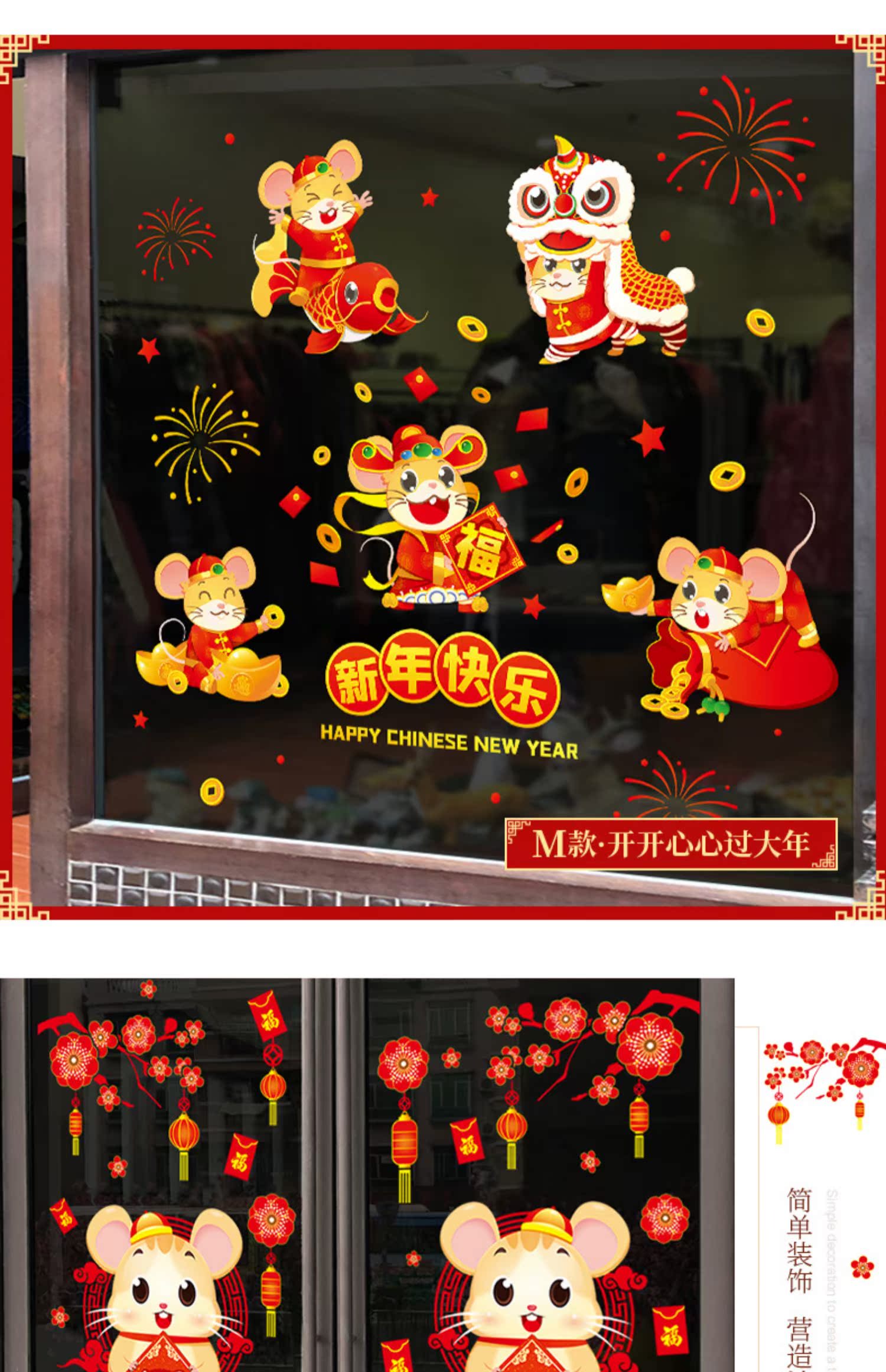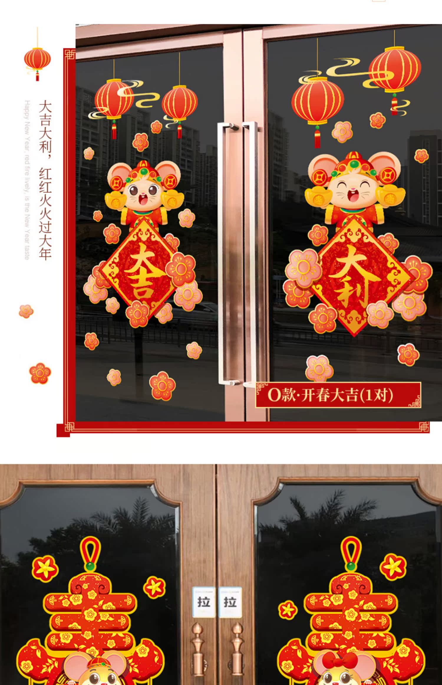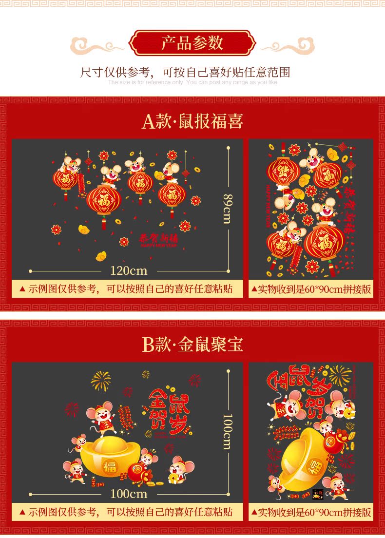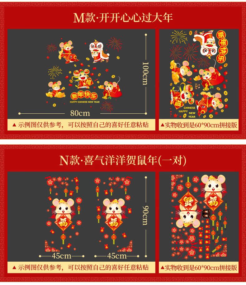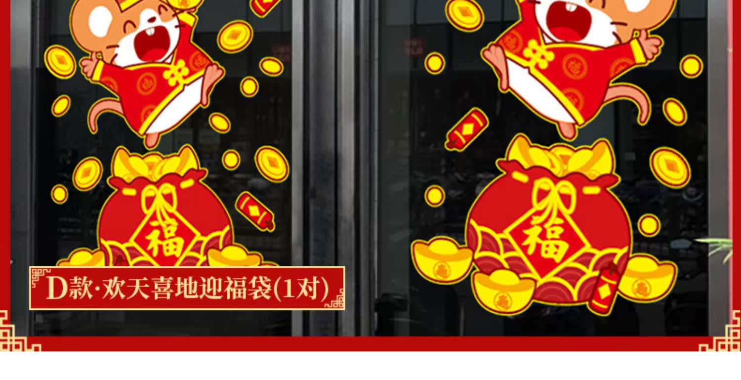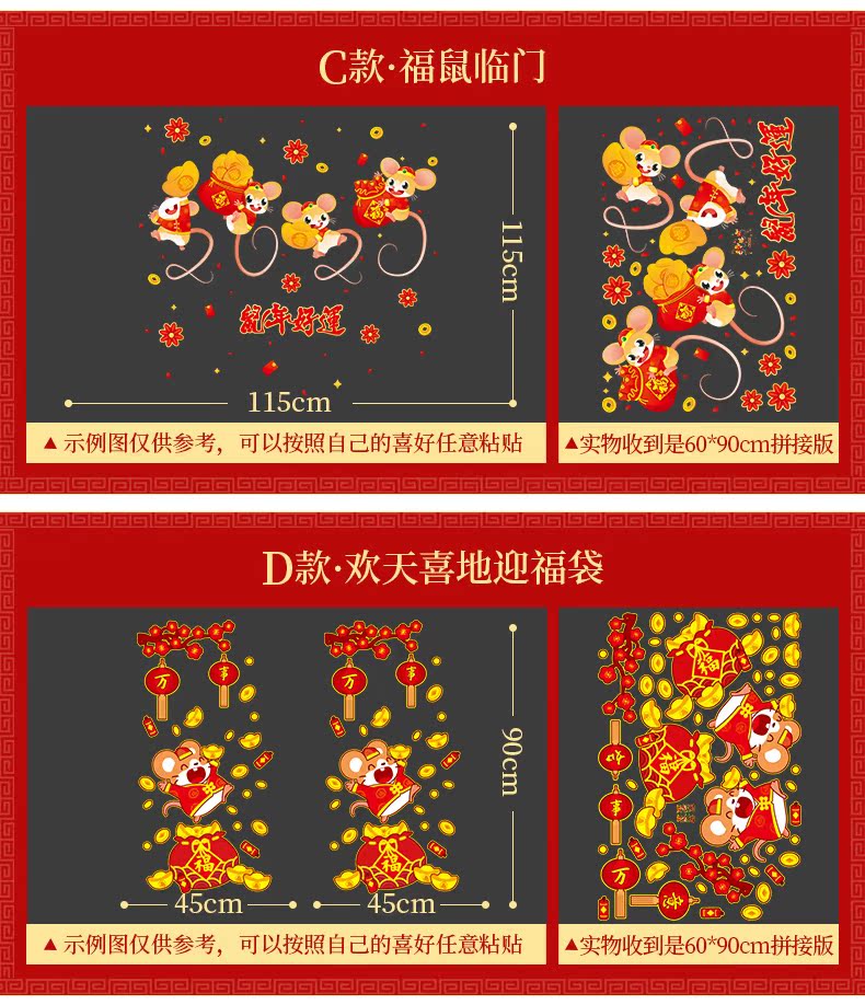 【超大贴纸,24个花色,全尺寸一个价】可爱卡通鼠年贴纸,款式新颖,不落俗套,张贴方便,氛围浓厚,开开心心迎新年,再接再厉创佳绩!