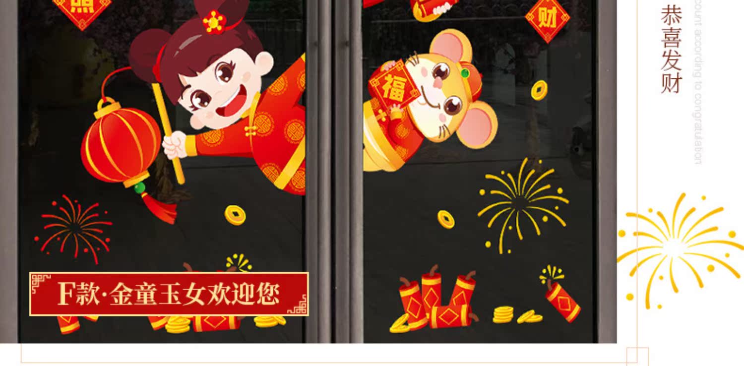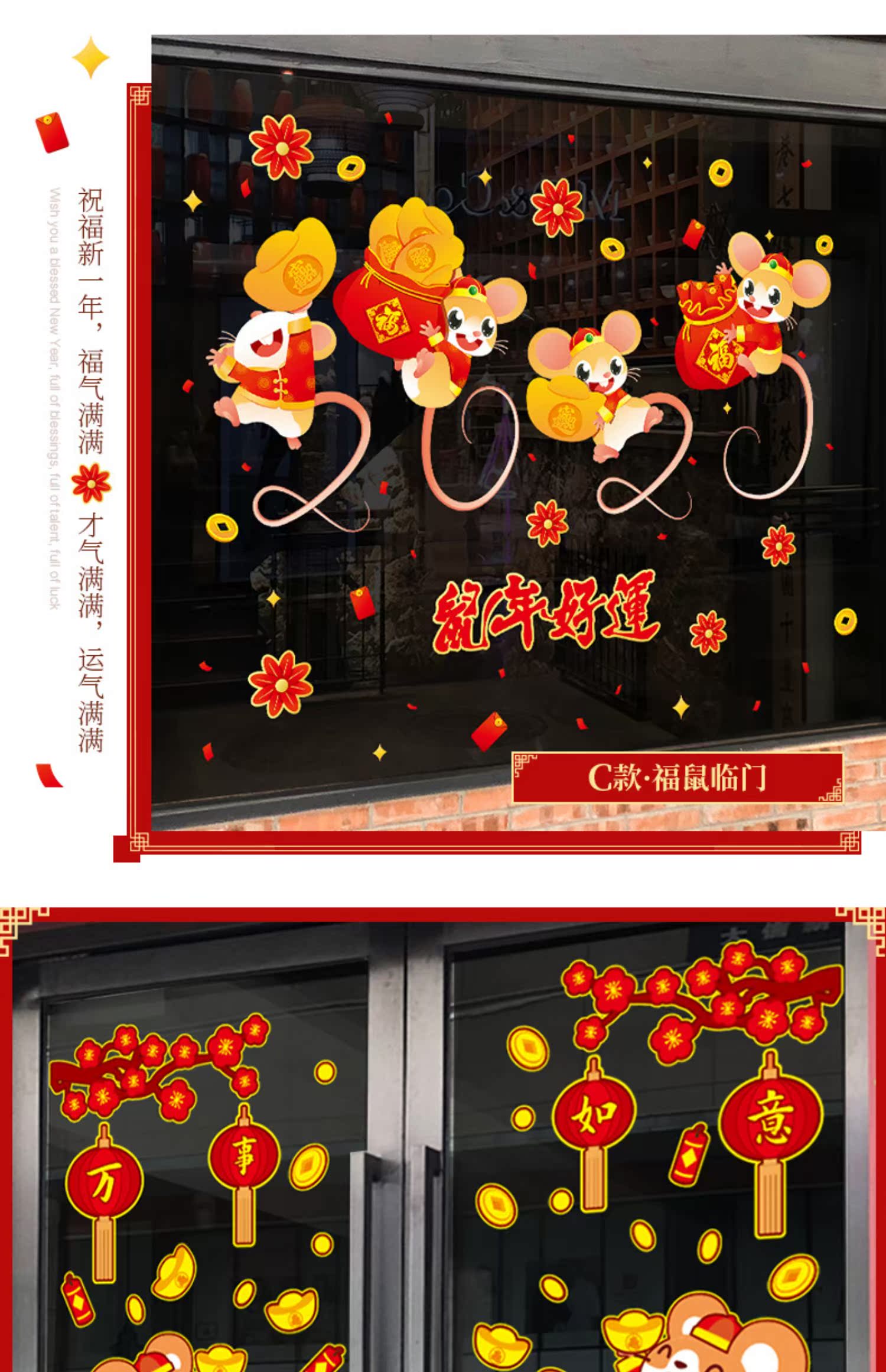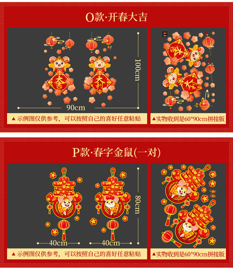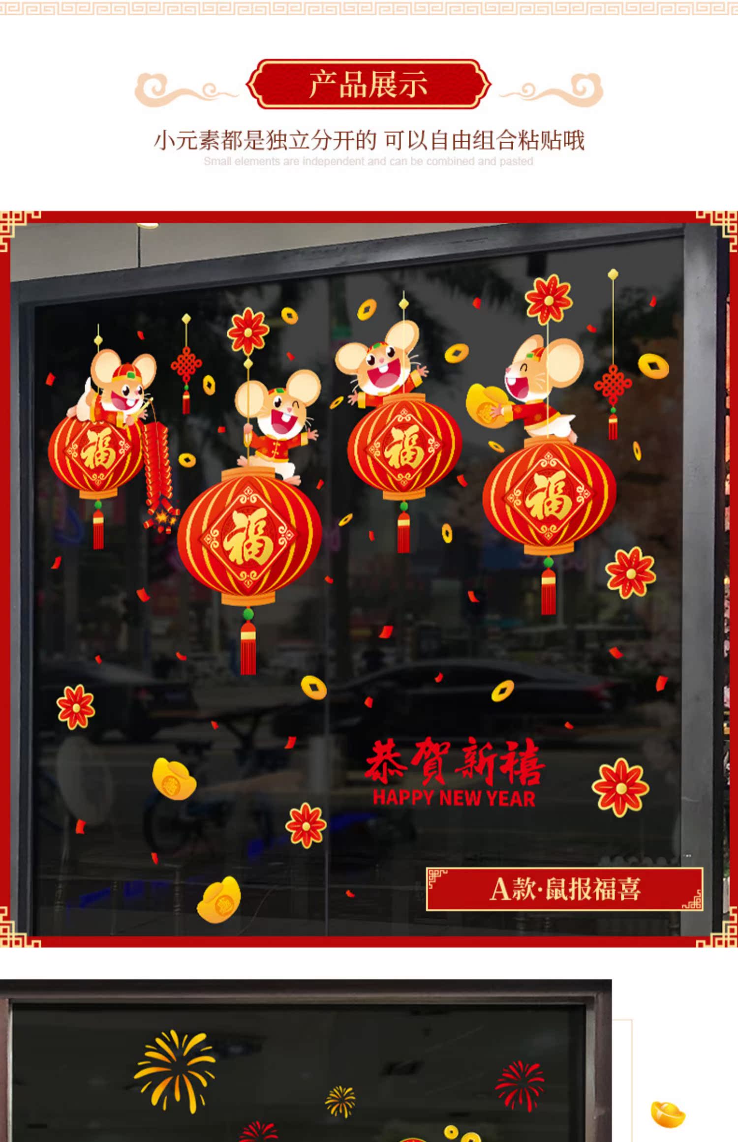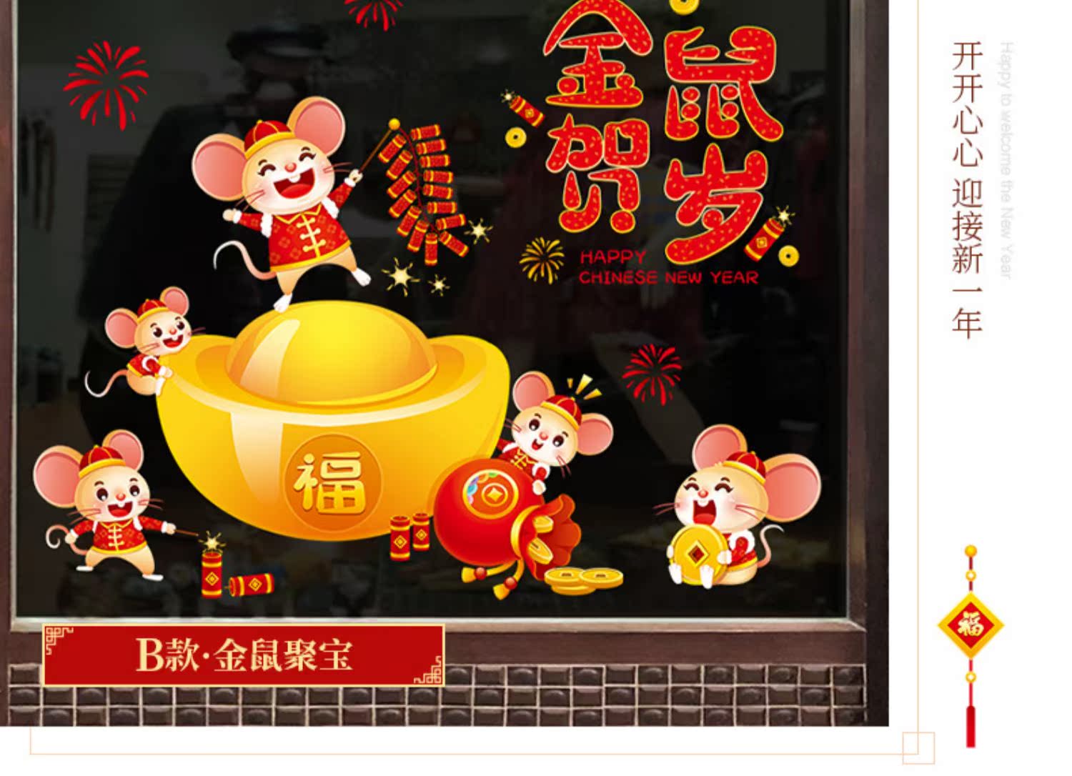 【超大贴纸,24个花色,全尺寸一个价】可爱卡通鼠年贴纸,款式新颖,不落俗套,张贴方便,氛围浓厚,开开心心迎新年,再接再厉创佳绩!
