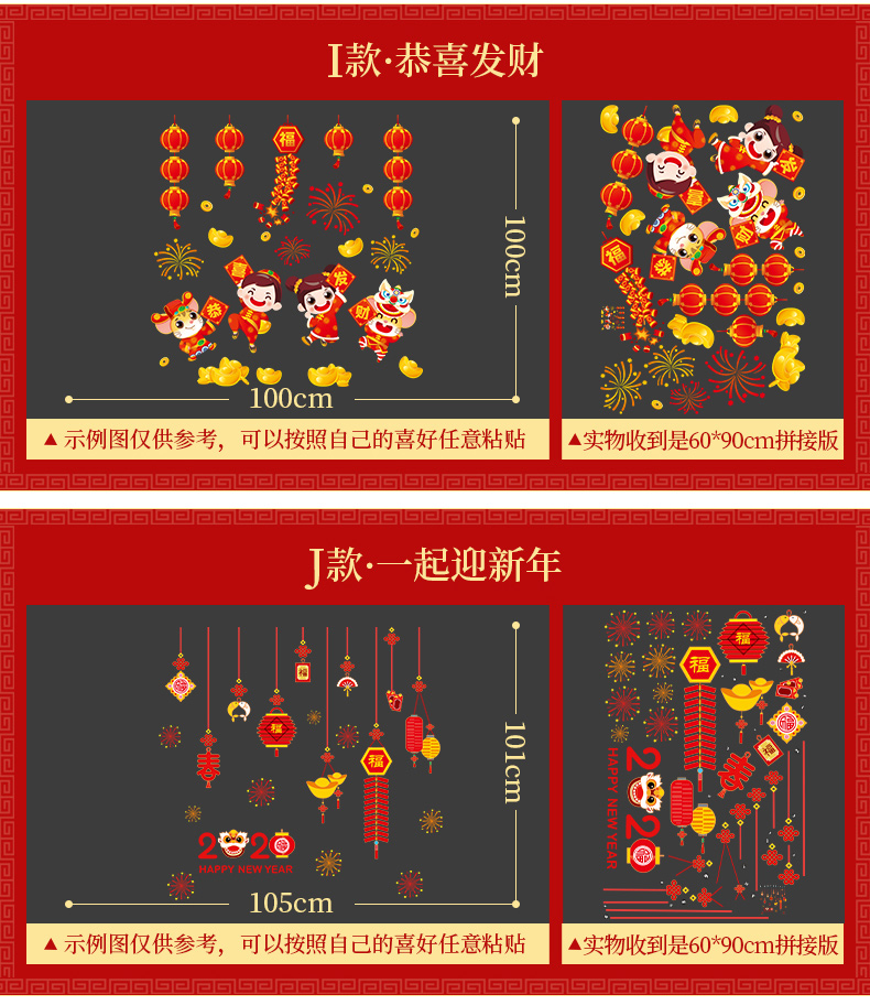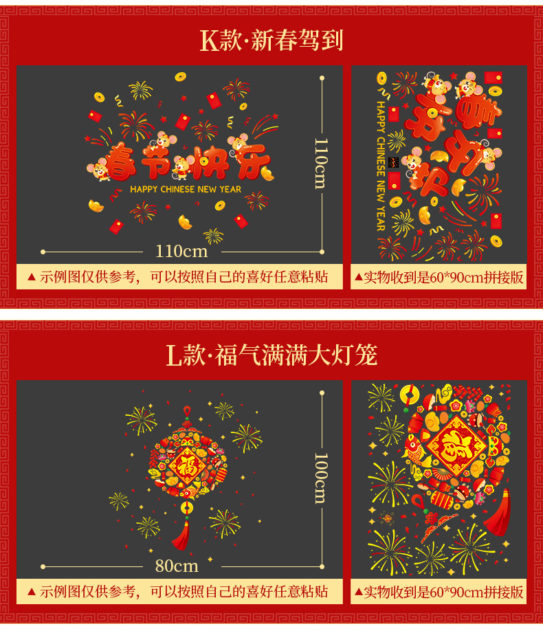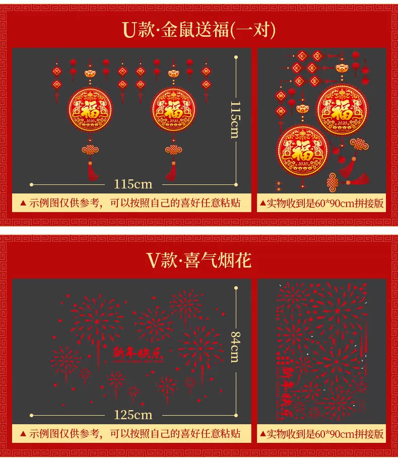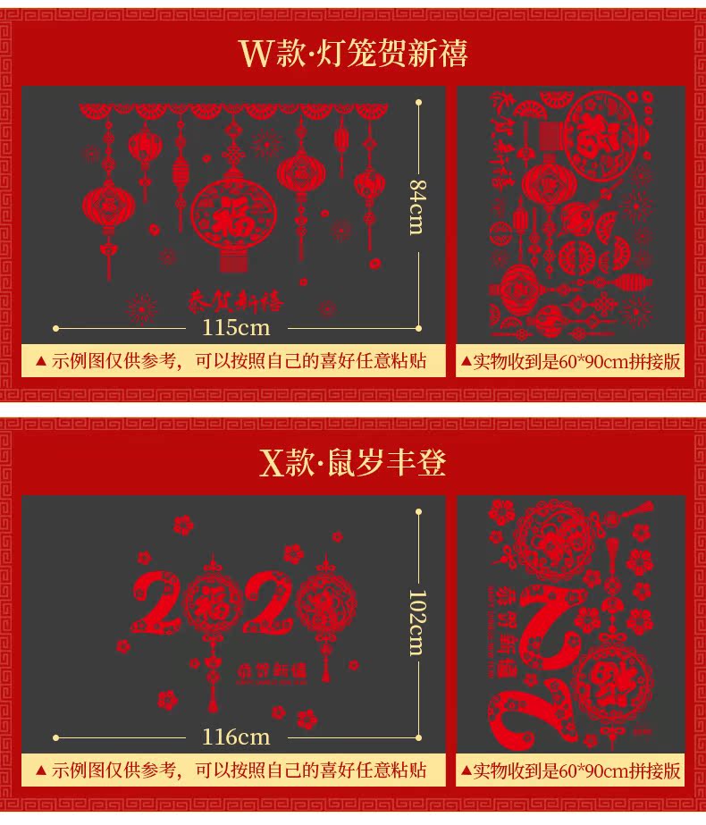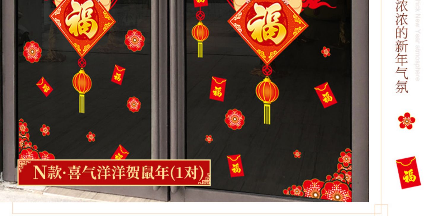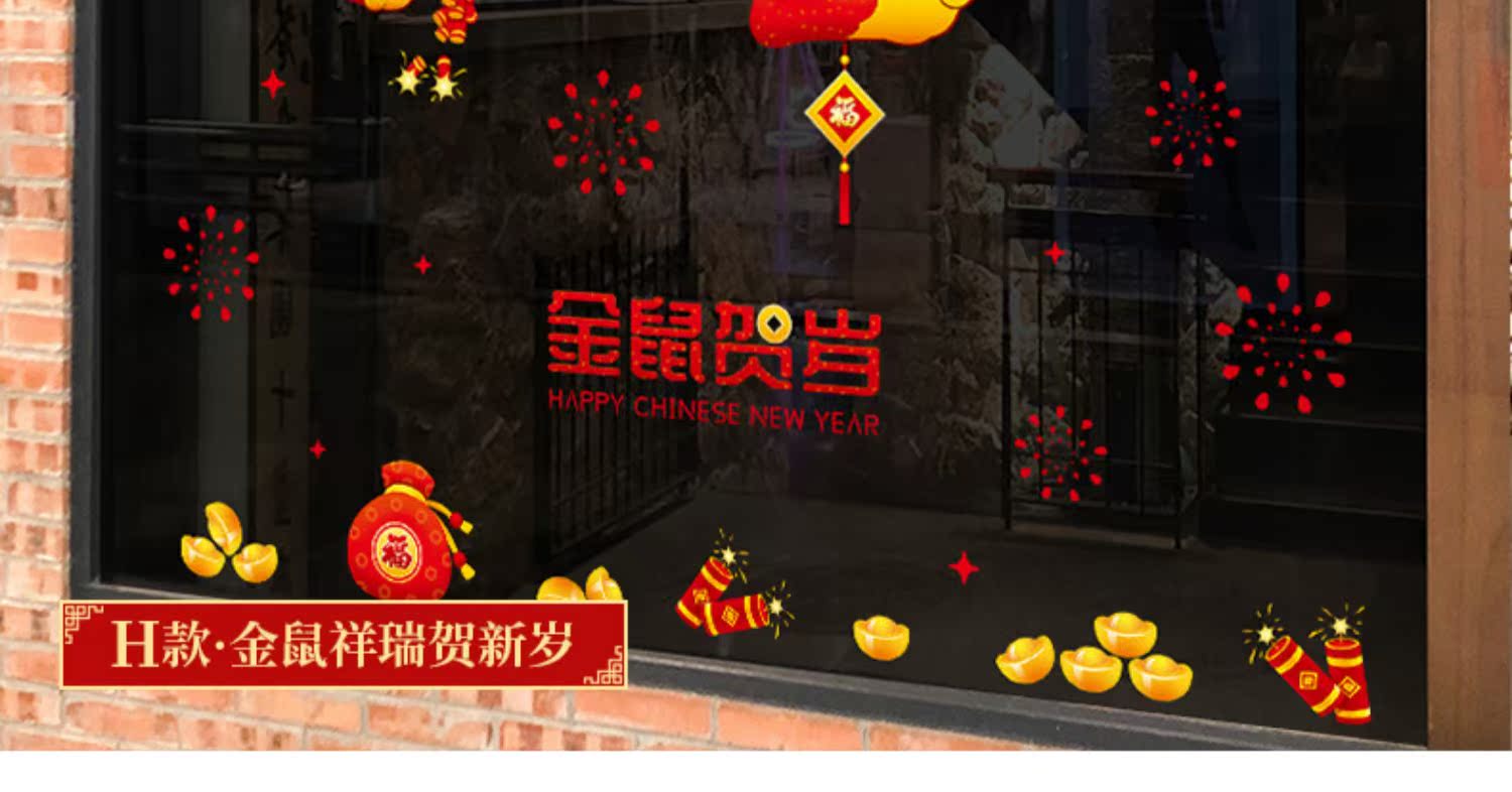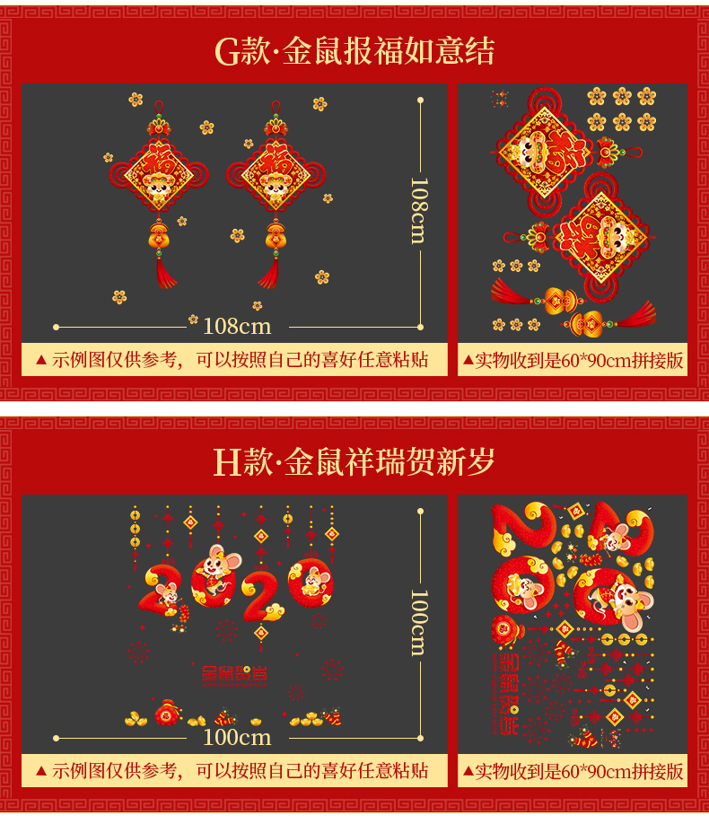 【超大贴纸,24个花色,全尺寸一个价】可爱卡通鼠年贴纸,款式新颖,不落俗套,张贴方便,氛围浓厚,开开心心迎新年,再接再厉创佳绩!