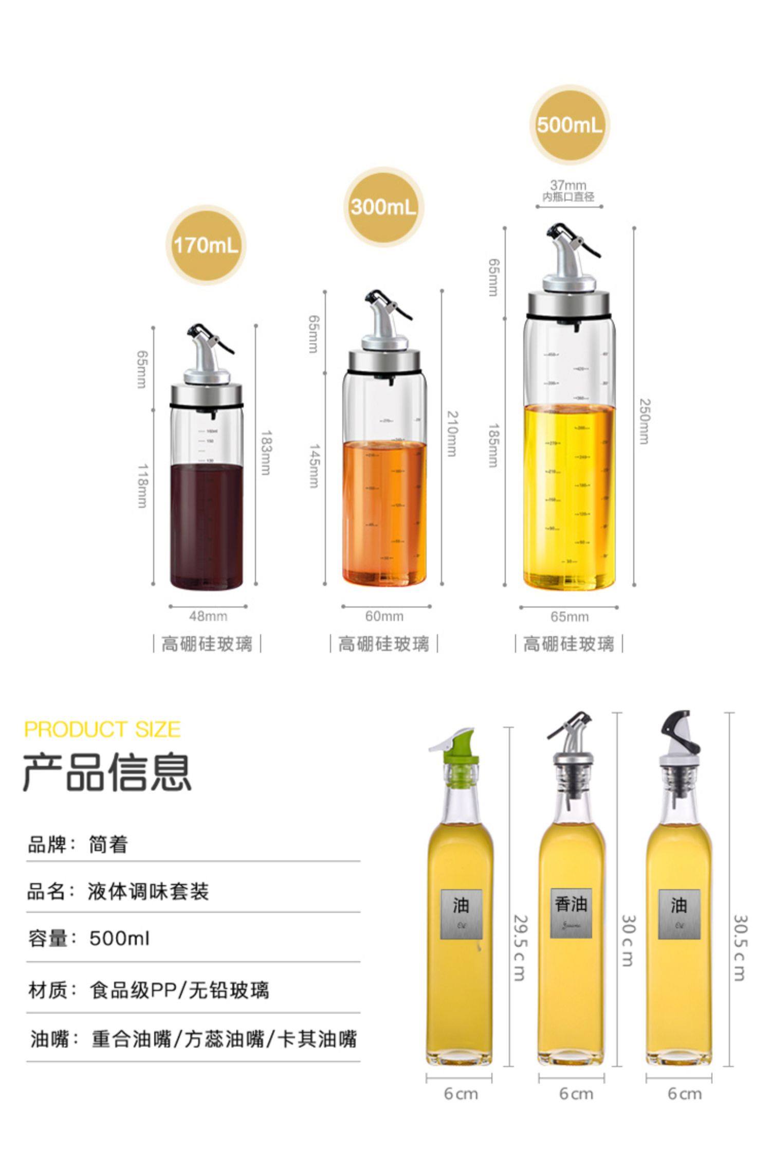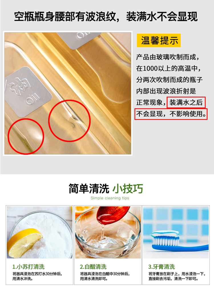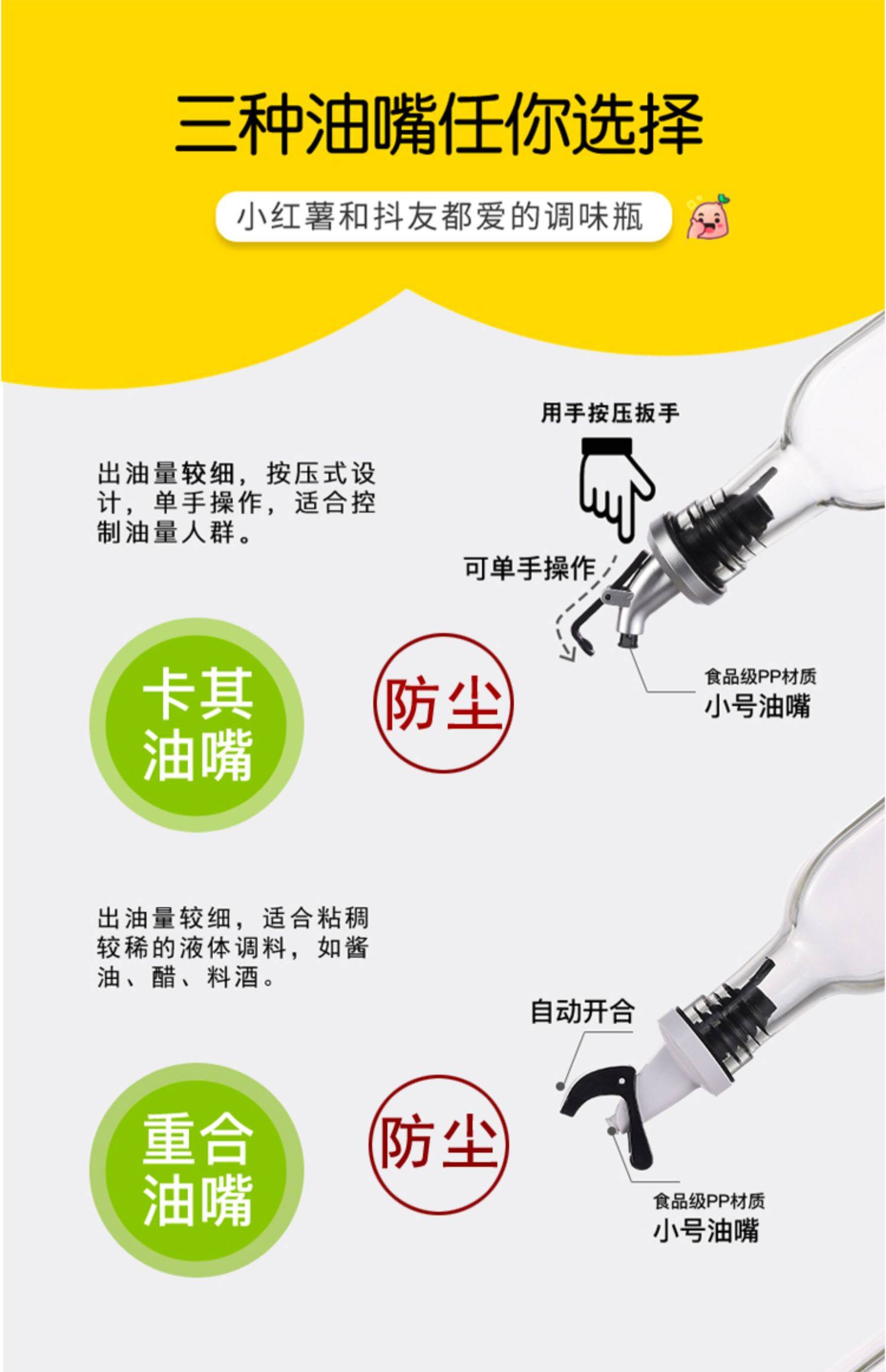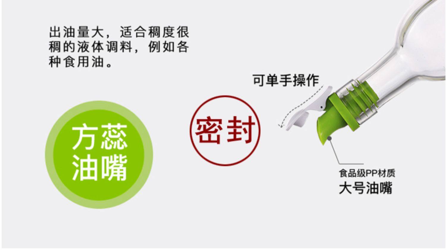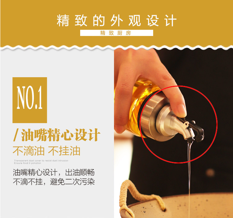 【买1送漏斗】无铅玻璃,外观精美,按压设计,不锈钢盖,贴标油瓶,防滑不漏液,路损包赔,给厨房来点料!