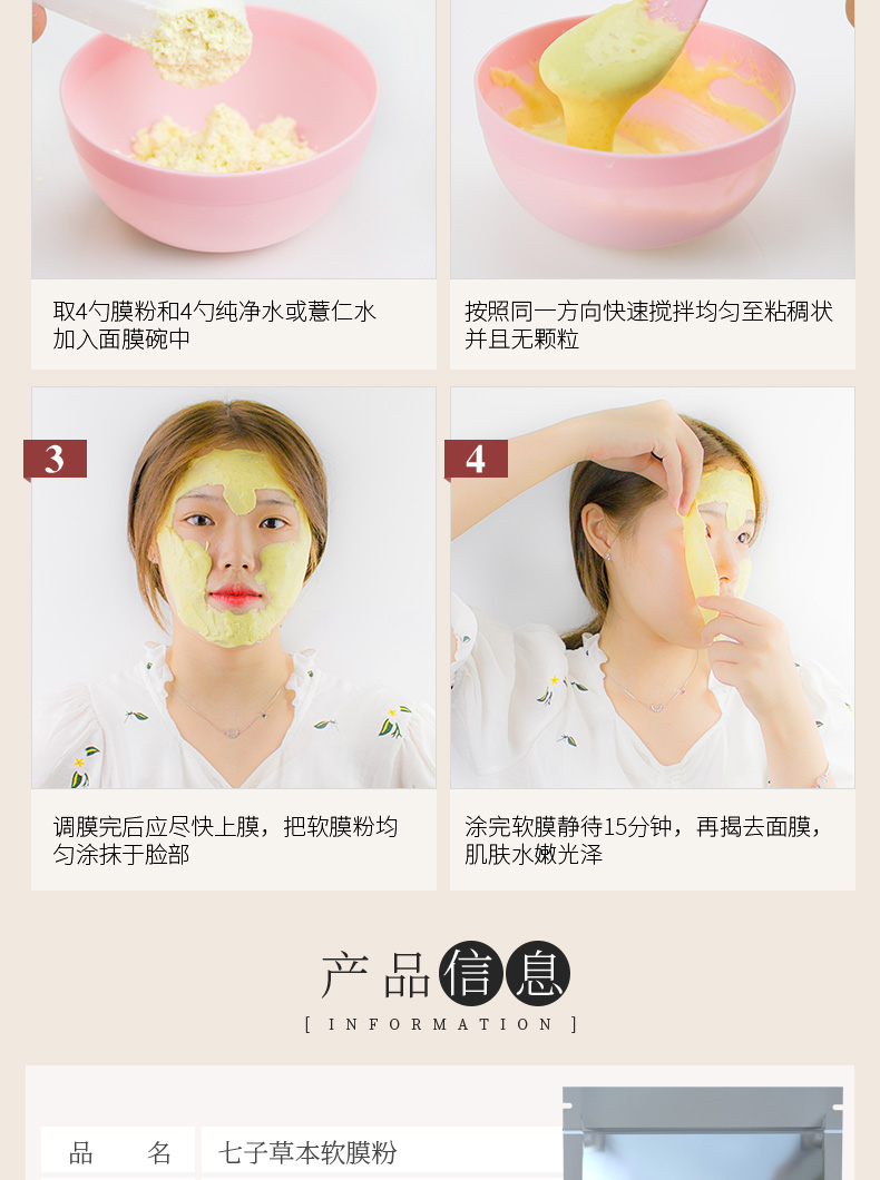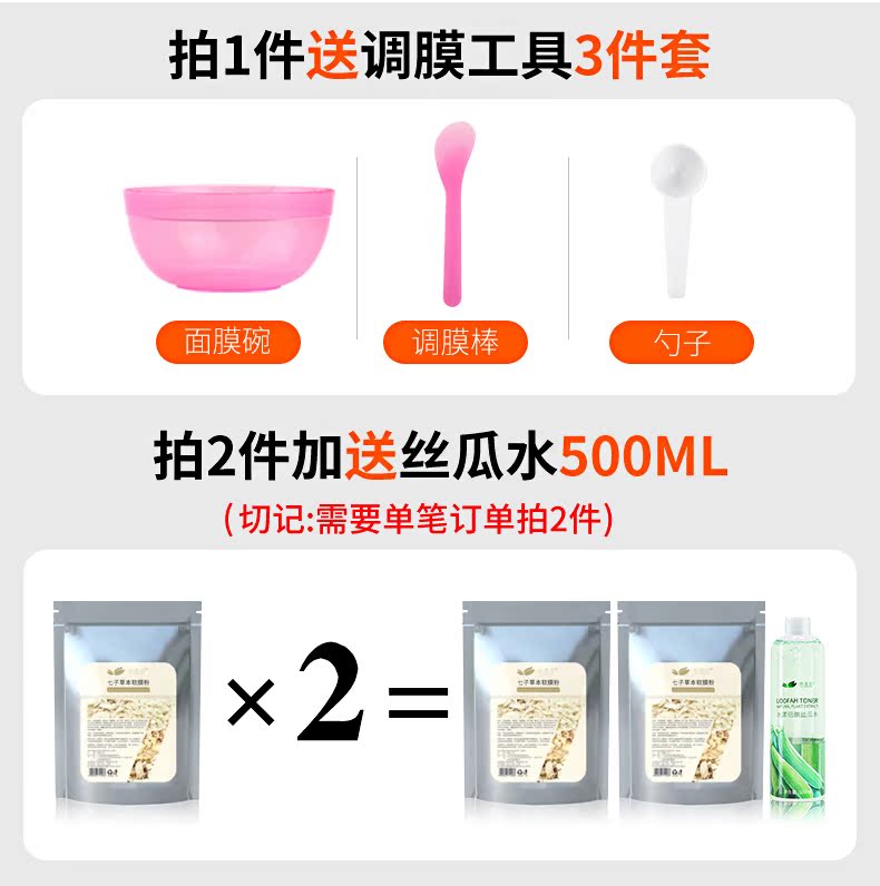 【送调膜工具3件套】美容院同款七子白草本软膜粉,1000g可以做50次面膜;改善痘痘肌肤,提亮肤色,含中药成分;内部券后只要29.9元。