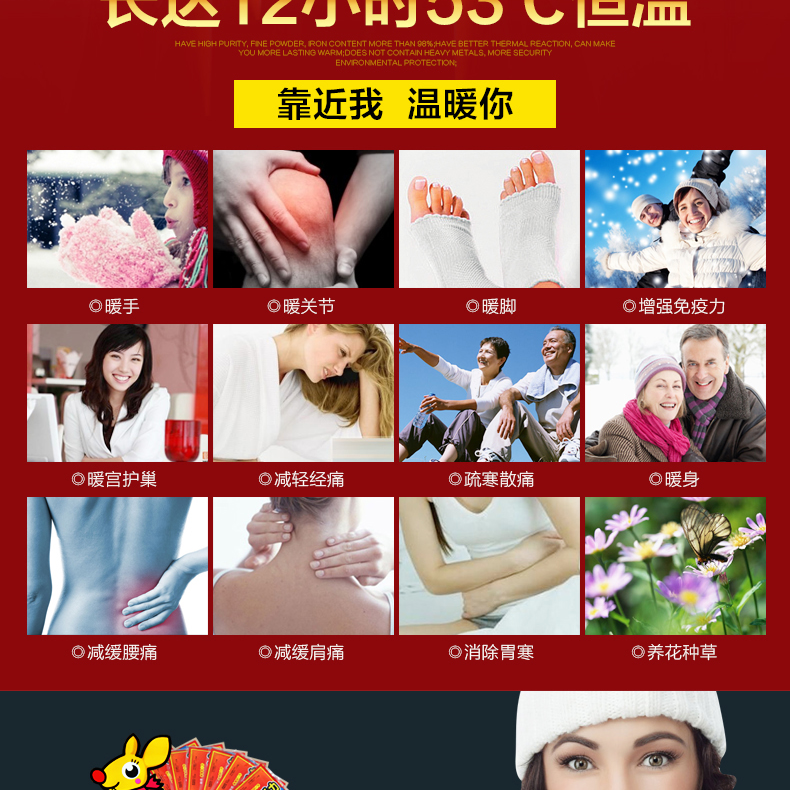 【50片】暖宝宝暖宫贴,四层无纺布,用料透气,高纯度铁粉,持续发热10小时,可宫寒/调理痛经,给你舒适的呵护,从此让你告别寒冷!