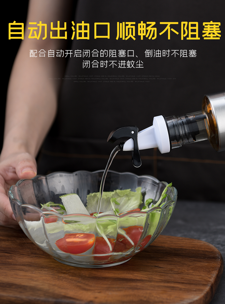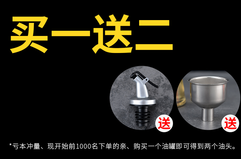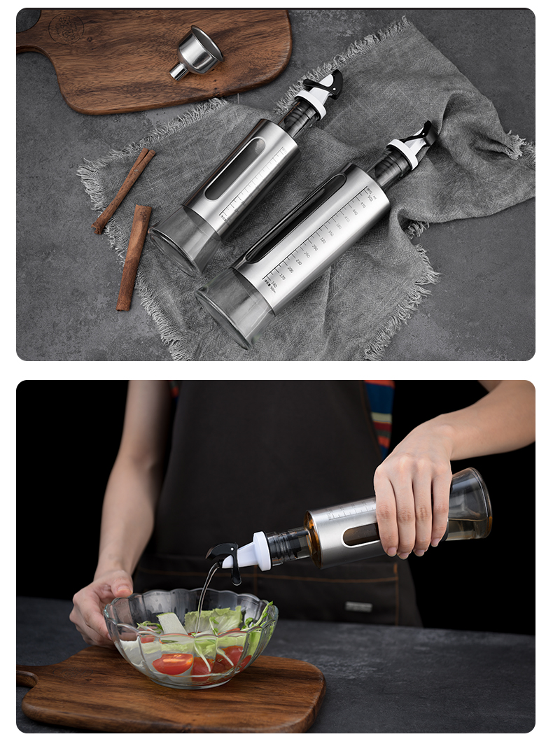 食用油长期与空气接触产生质变? 家里炒菜倒油不好控量? 用完盖盖子麻烦?现在统统不是问题~ 钢化玻璃内胆,不锈钢包裹,结实美观~ 健康用油,炒出健康的菜。 【送不锈钢漏斗】【赠运费险】