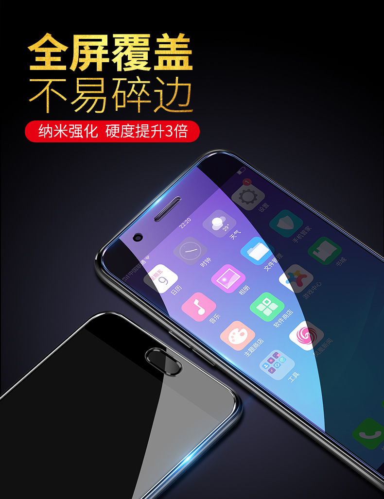 【3片装】OPPO系列R9/R11/R15/R17,9D全屏覆盖钢化膜,9倍防爆防摔,强抗指纹,不翘边无白边,完美贴合无缝隙,耐刮耐磨,温柔护目,不仅仅是钢化膜!