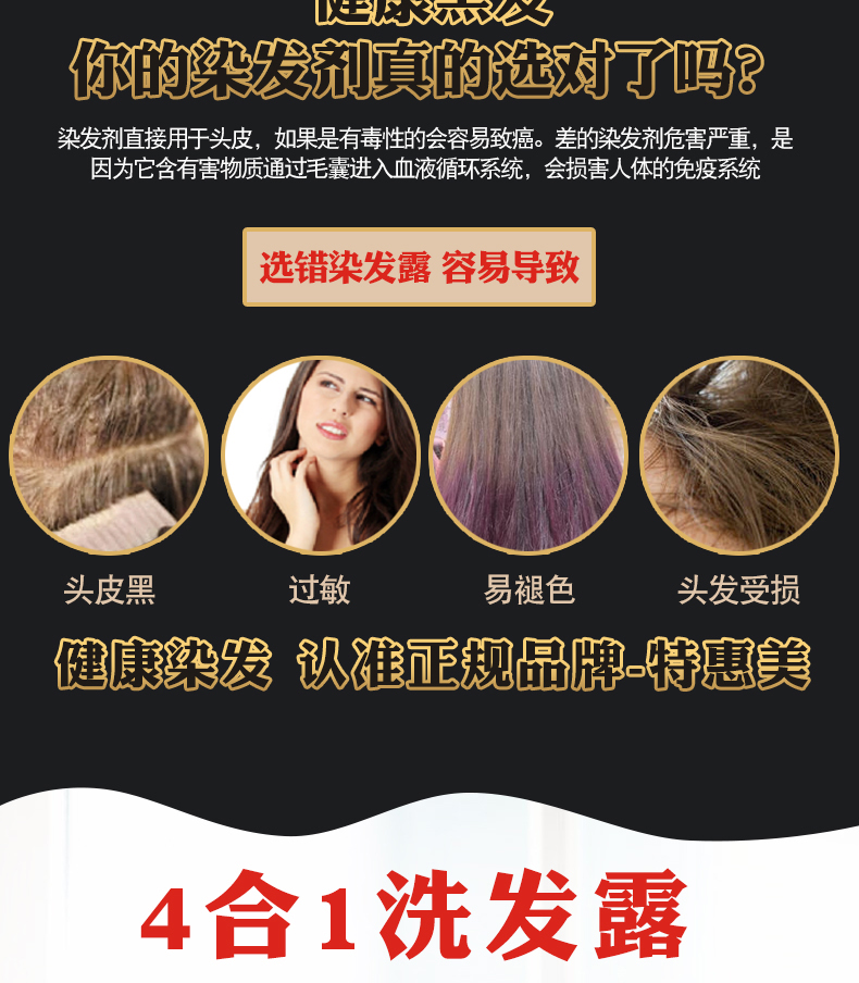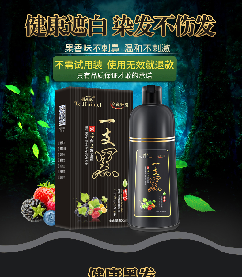 500ml+380男士洗发水加量升级版,染发剂植物一洗黑洗发水纯自然黑色染发膏天然无刺激一支黑绿色配方,只黑头发不黑头皮,健康黑发加量升级版