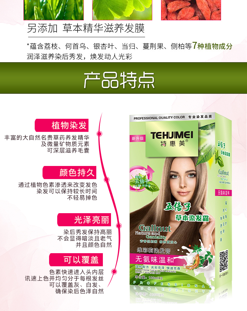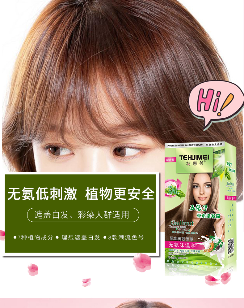 染发剂植物纯黑无刺激水亚麻灰染发膏霜天然酒红黑色一洗支黑色,无氨植物染发,遮白低刺激