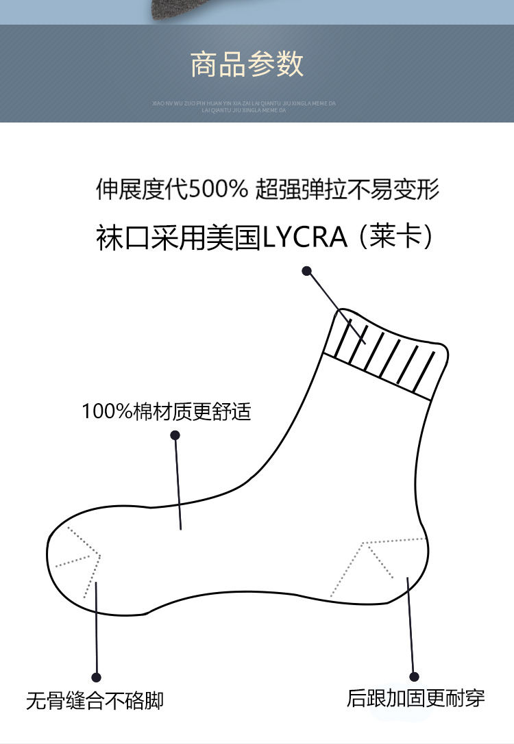 采用优质的棉面料,纯棉吸汗不臭脚,面料柔软亲肤,穿着舒适透气吸汗不闷脚,弹力罗口,不掉跟,多款可选,天然印染方式,穿着健康更放心。
