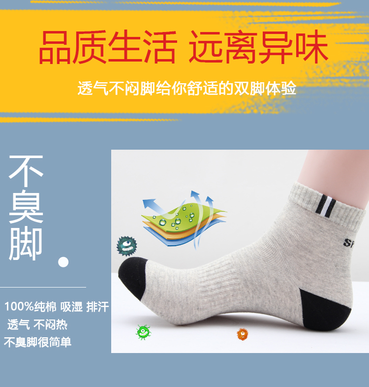 采用优质的棉面料,纯棉吸汗不臭脚,面料柔软亲肤,穿着舒适透气吸汗不闷脚,弹力罗口,不掉跟,多款可选,天然印染方式,穿着健康更放心。