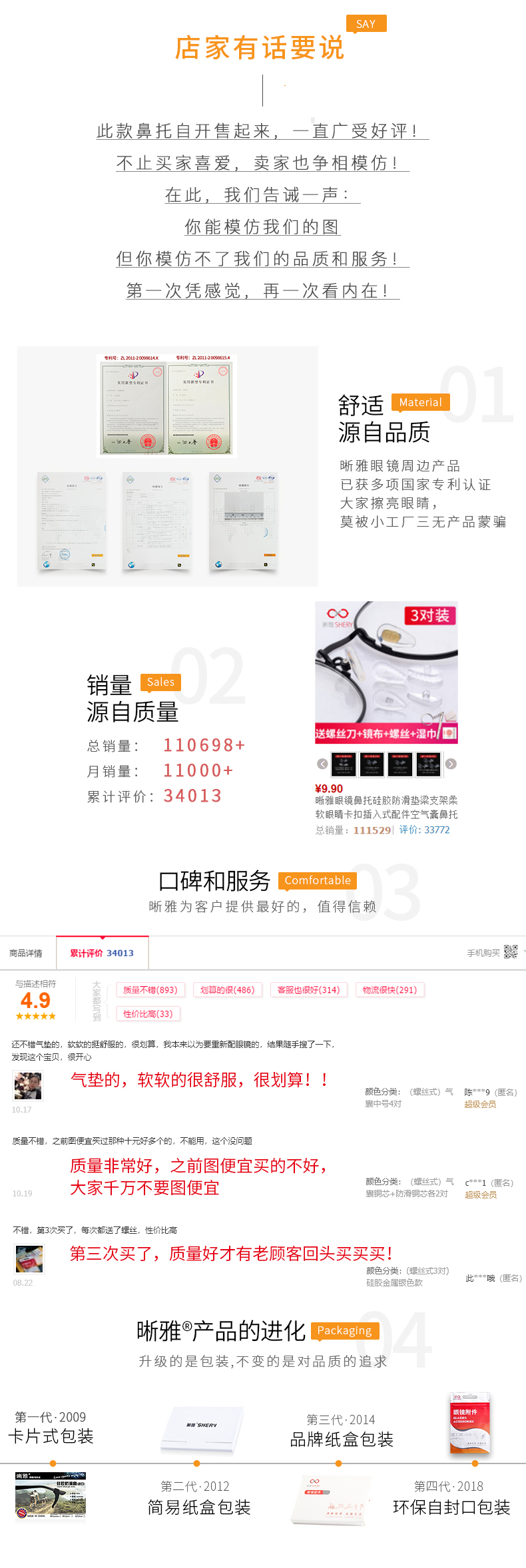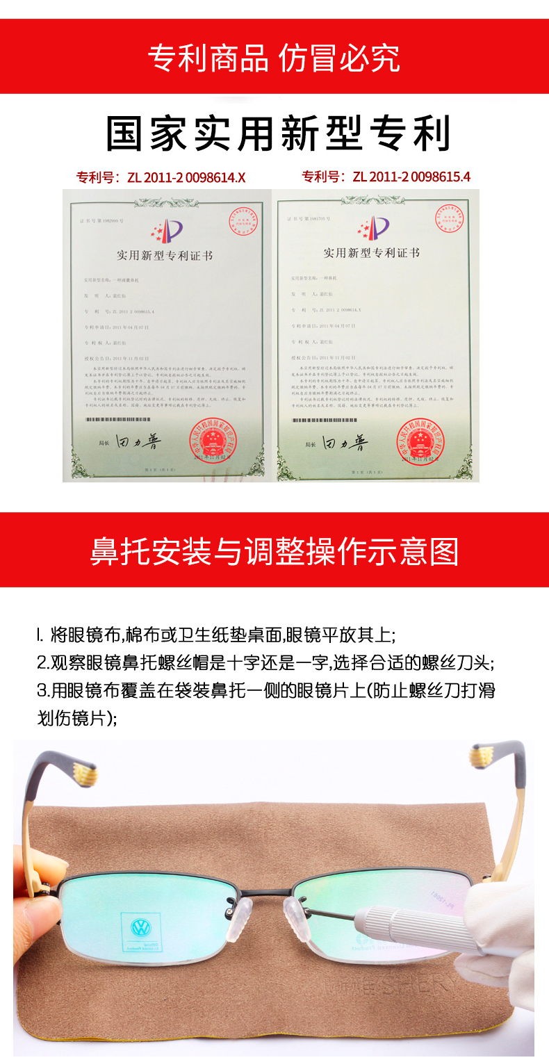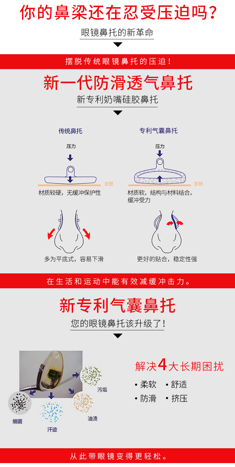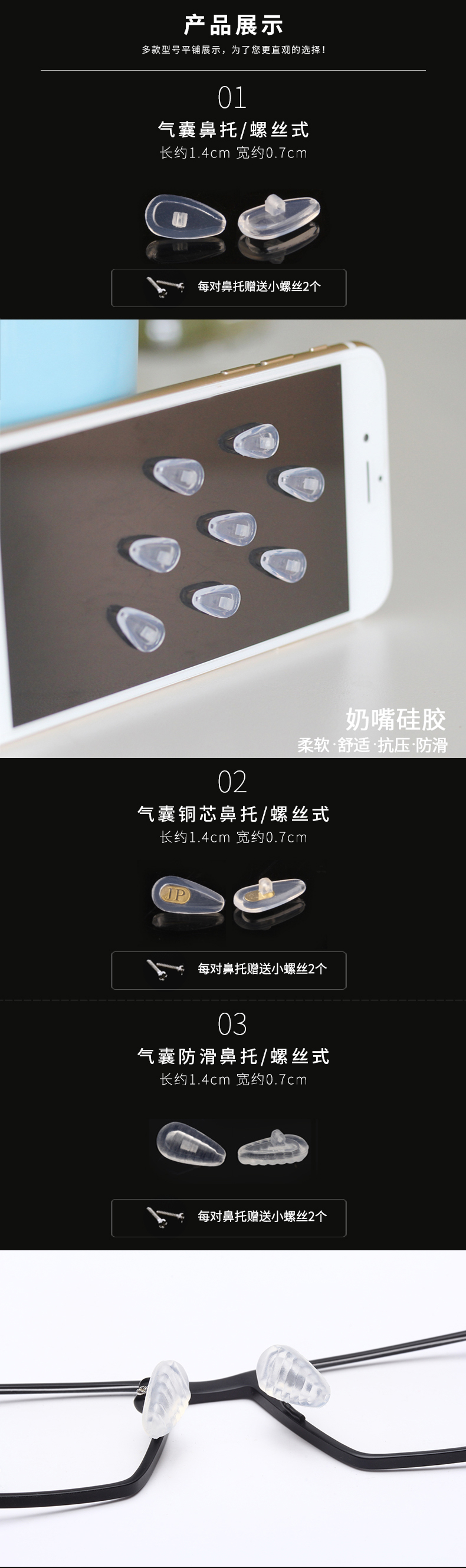【买送多功能螺丝刀+镜布+配套螺丝】专利气囊鼻托,材质软,结构与材料结合,缓冲受力,更好的贴合,稳定性强。你的眼镜鼻托该升级了。
